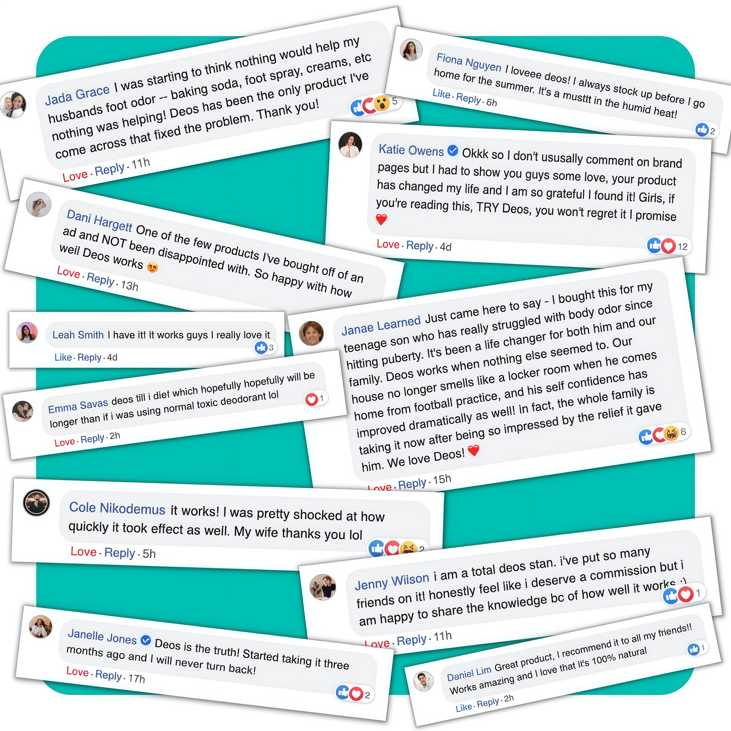 These comments come from actual customers who have seen results with consistent use of Deos® Body Deodorizer!